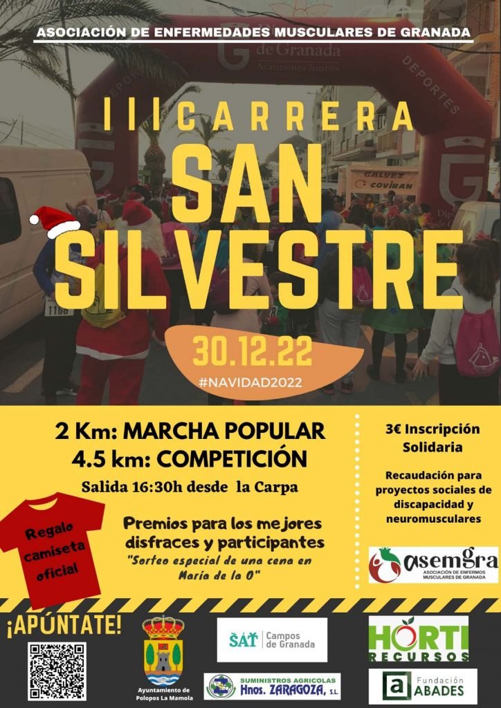 Apenas faltan diez días para que La Mamola (Granada) celebre su tradicional Carrera San Silvestre, competición que este año cumple su tercera edición y que tendrá carácter solidario, ya que será a beneficio de la Asociación de Enfermedades Musculares de Granada.